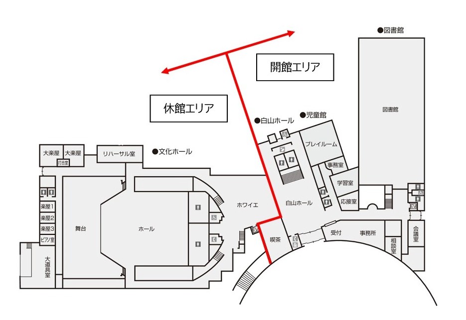 なお、休館部分は文化ホールエリアのみとし、児童館や図書館等の生涯学習エリアについては、工事期間中も通常通り開館する予定です。